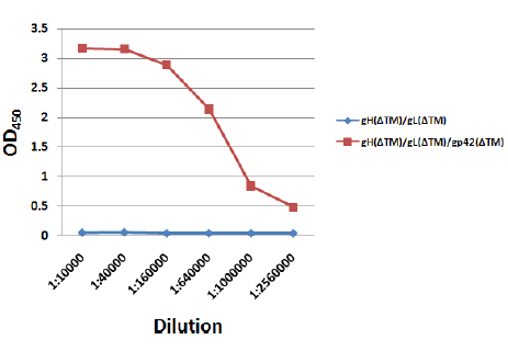 - Immunogen: Co-immunization with DNA vaccine expressing gH protein (a.a.1-706) (Genebank #: P03231), gL protein (1-137) (Genebank #: CAD53428), and gp42 protein (a.a. 1-223) (Genebank #: YP_401672)