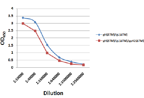 - Immunogen: Co-immunization with DNA vaccine expressing the ectodomains of gH protein (a.a.1-529) (Genebank #: P03231), and gL protein (1-137) (Genebank #: CAD53428).