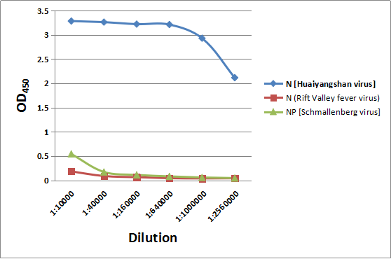 - Specificity: Reacts with NPs from SFTS Virus(Huaiyangshan Virus), RVFV, and Schmallenburg virus.