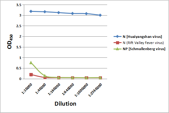 - Specificity: Reacts specifically with NP (SFTS Virus)(Huaiyangshan Virus). Minimal cross-reactivity to other Bunyavirus nucleocapsid protein.